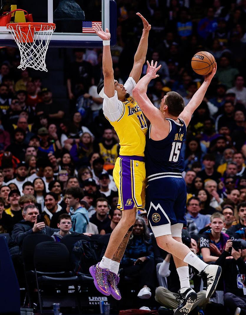 3月15日NBA常规赛焦点战——洛杉矶湖人主场迎战丹佛掘金!作为最近几个赛季相对克制湖人的球队,掘金本赛季长时间遭受伤病困扰,直到最近球队阵容才慢慢恢复齐整,此役双方都没有主要球员缺阵。湖人詹姆斯、斯玛特、艾顿、里夫斯、东契奇搭档先发,掘金这边约翰逊、戈登、约基奇、布劳恩、穆雷先发。对于双方来说此役是保住分区前六乃至前四的重要卡位战,目前湖人41胜25负排名西部第四,掘金41胜26负排名西部第五谁赢球谁就能上升排名。此役是双方本赛季的第三次交手,前两次对决双方各赢下一场,不过由于掘金前两场比赛都有多名核心球员没打,参考意义不大。此役比赛有许多看点,最近状态出色的艾顿能何种程度限制约基奇的发挥至关重要,同时斯玛特防守端能否限制穆雷的发挥同样重要,进攻端则要看东契奇、里弗斯的表现。
